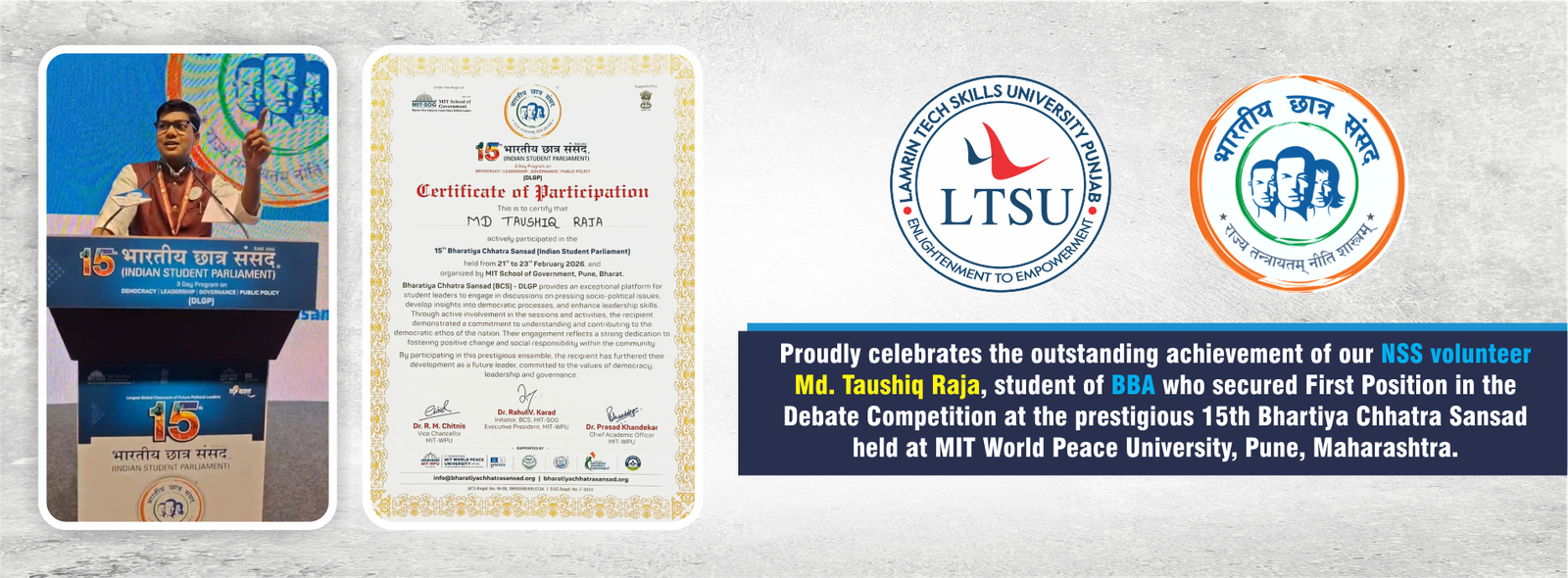 IBM India Private Limited (“IBM India”) has entered into an agreement with Lamrin Skills Tech University (LTSU, or the University), to facilitate the University in offering courseware and training to students of the University. Students are advised that enrolment in any courses offered by the University does not imply any preferential treatment in recruitment into IBM India. IBM does not make any representations or commitments, either to the University or to any students of the University, about student placements, salary commitments, or any other matters related to recruitment at IBM.