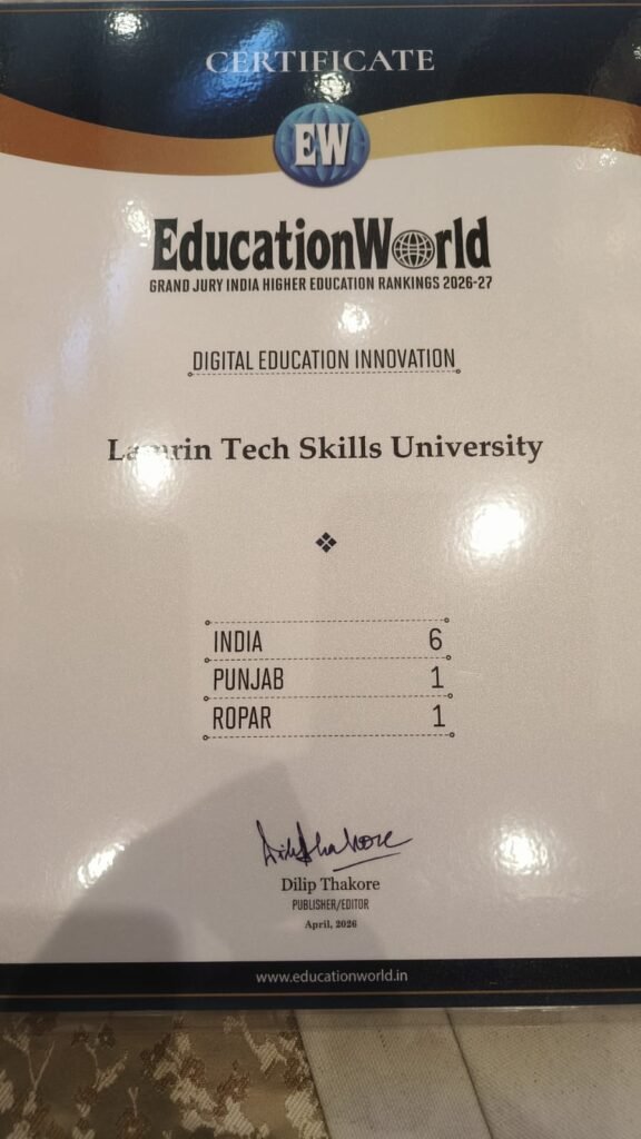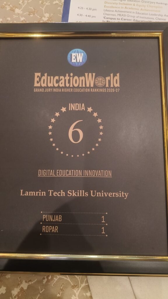 It is a moment of immense pride, honor, and celebration for the entire academic community as Lamrin Tech Skills University Punjab achieves a remarkable milestone on the national stage. We are delighted to announce that LTSU has been recognized among India’s Top 10 Universities, securing the #6 rank nationally and emerging as the #1 University in Punjab for Digital Education Innovation (2026–2027) by EducationWorld India.
