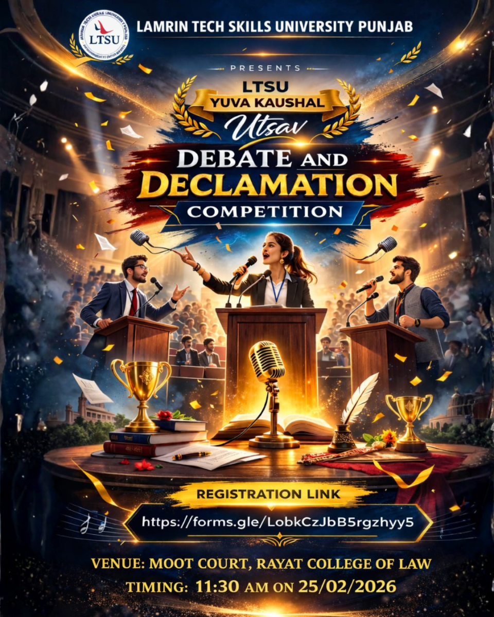 Lamrin Tech Skills University, Punjab is proud to organize the Debate and Declamation Competition as part of LTSU Yuva Kaushal Utsav 2026. Scheduled on 25 February 2026, this event provides students with a powerful platform to express ideas, present arguments, and demonstrate the art of impactful communication.