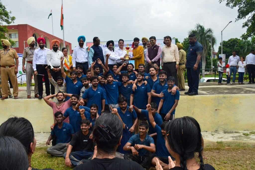 Students participating in the Matki Phod Competition organised on the occasion of Krishna Janmashtami at Lamrin Tech Skills University Punjab.
