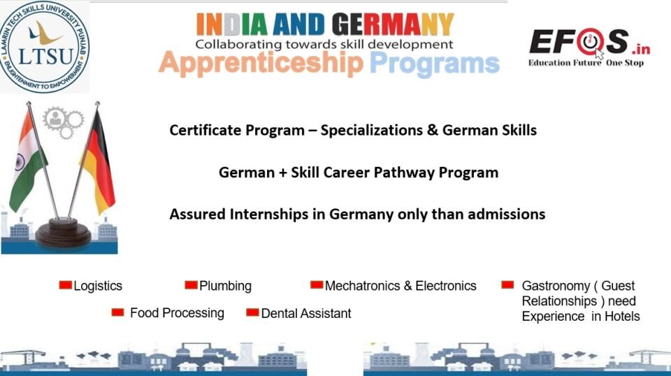 In today’s competitive world, every student dreams of building a career that goes beyond borders. At Lamrin Tech Skills University (LTSU), Punjab, in collaboration with EFOS (Knowledge Partner), we bring you a life-changing opportunity — The German Ausbildung Program — a gateway to a guaranteed job in Germany through a unique “Study in India – Work in Germany” model.