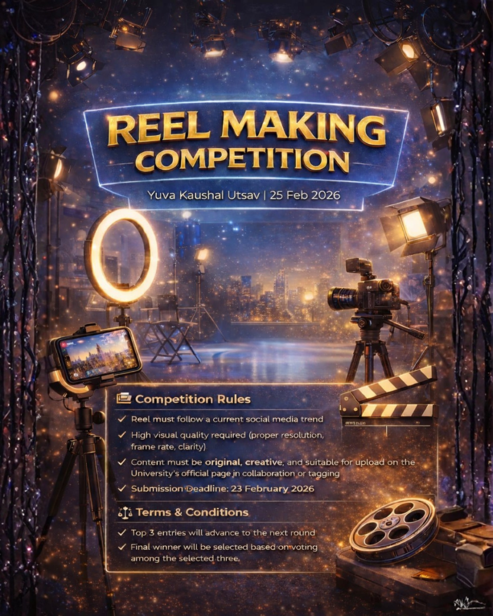 Lamrin Tech Skills University, Punjab is organizing an exciting Reel Making Competition as part of Yuva Kaushal Utsav 2026. Scheduled on 25 February 2026, this competition gives students a creative platform to showcase their storytelling, editing, and digital content creation skills.