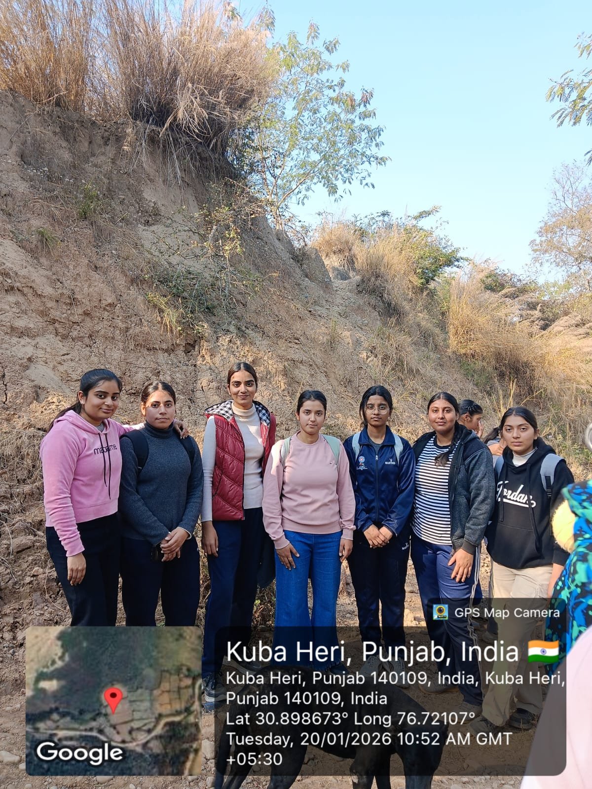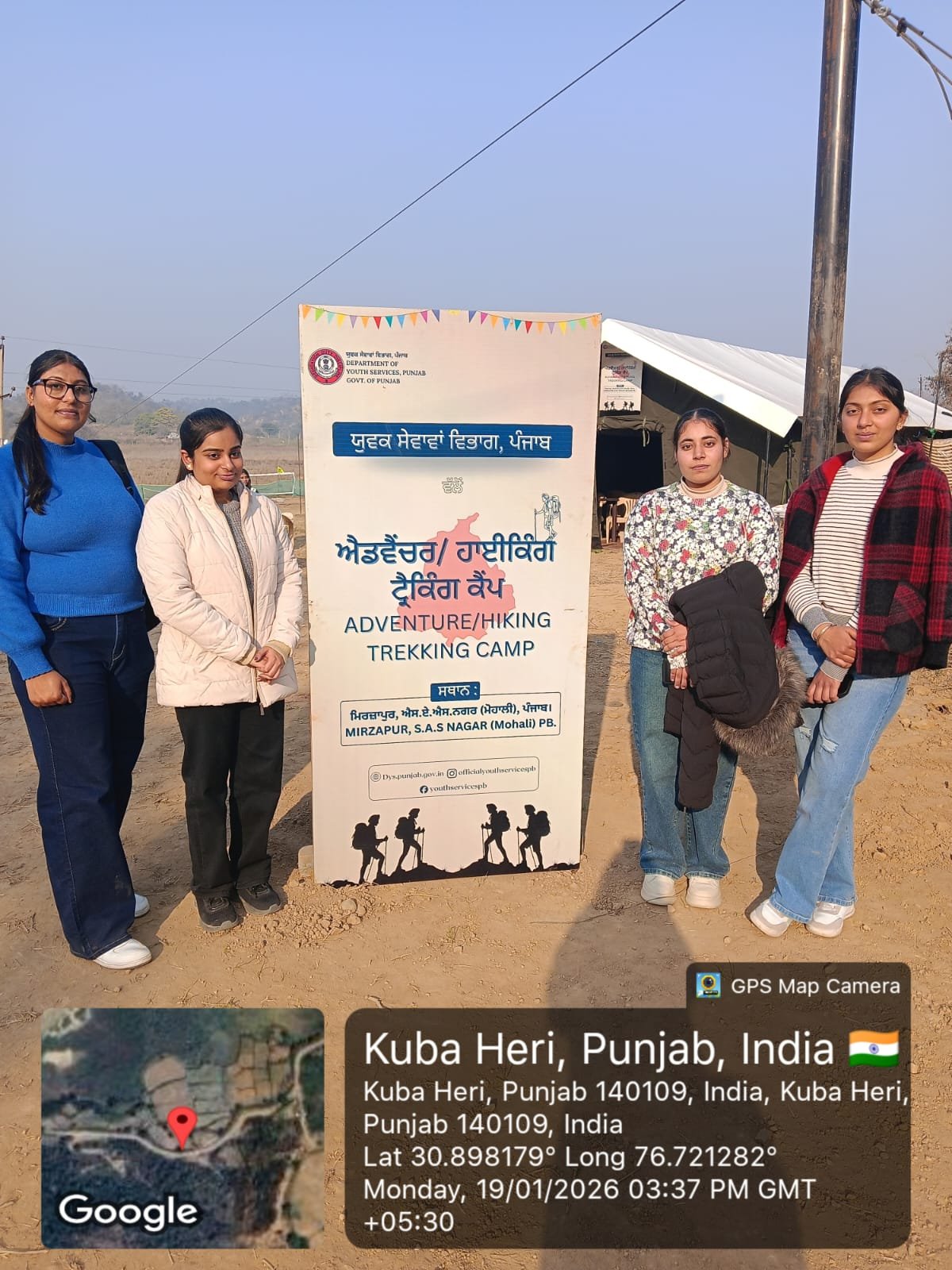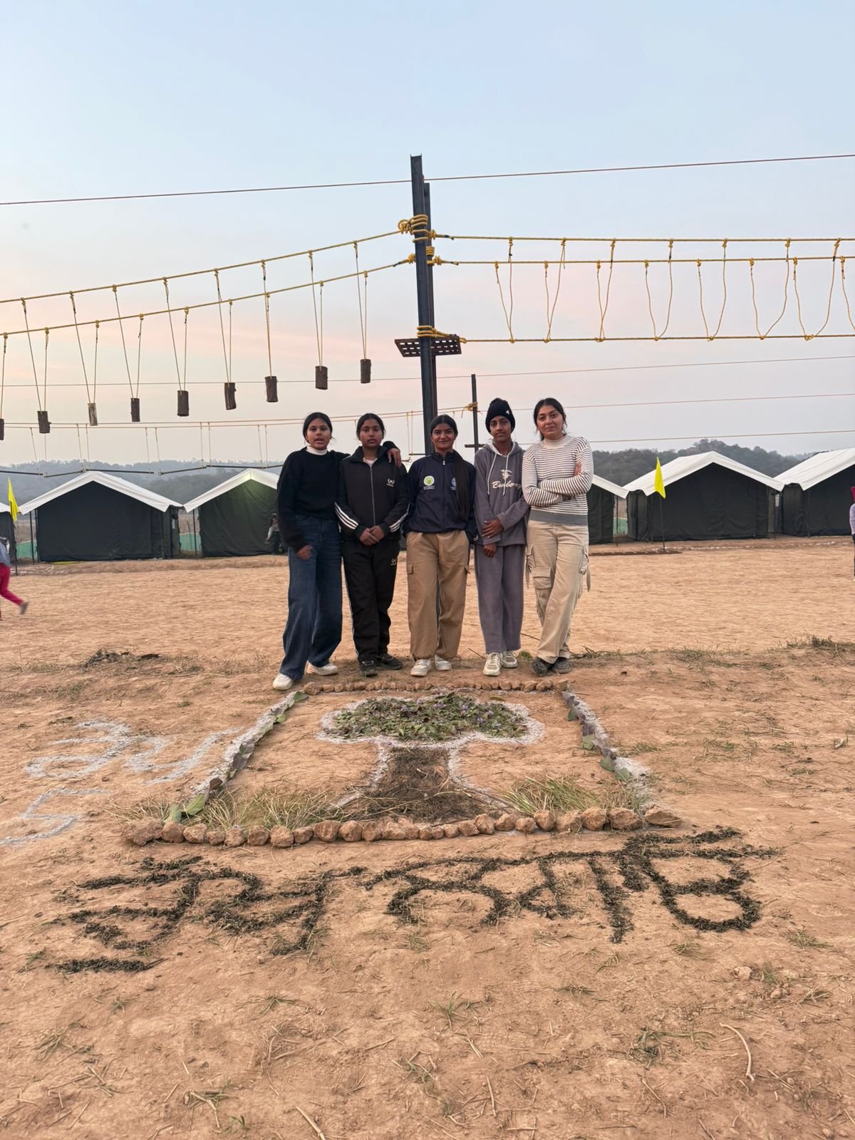 The day included morning physical exercises, followed by a trek to Siswa Dam, covering a total distance of 12 kilometers, which enhanced endurance, teamwork, and connection with nature. Post-trek, participants took part in an eco-friendly creative activity, designing rangoli using natural materials such as leaves, stones, wood, and ash available at the campsite.