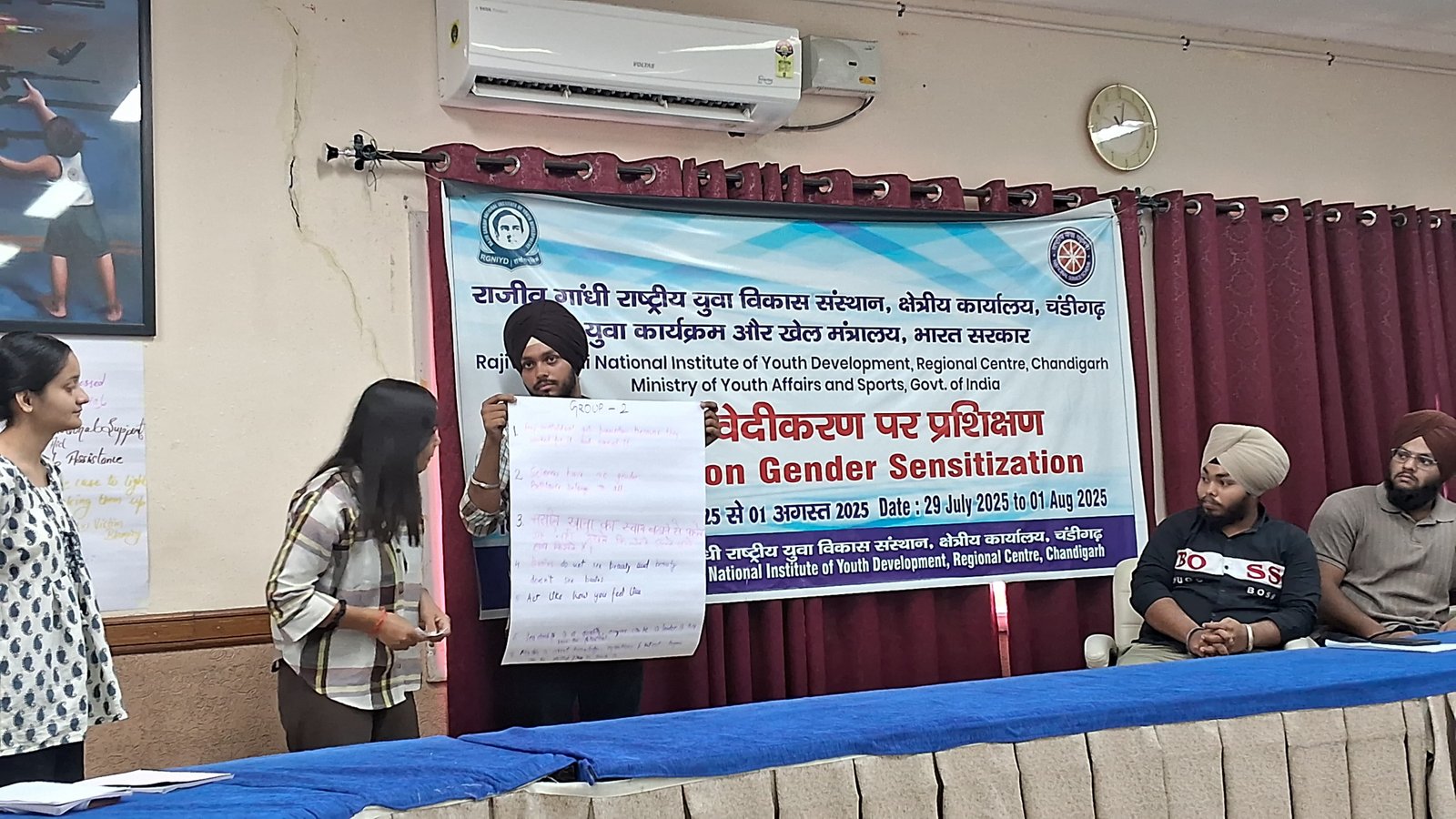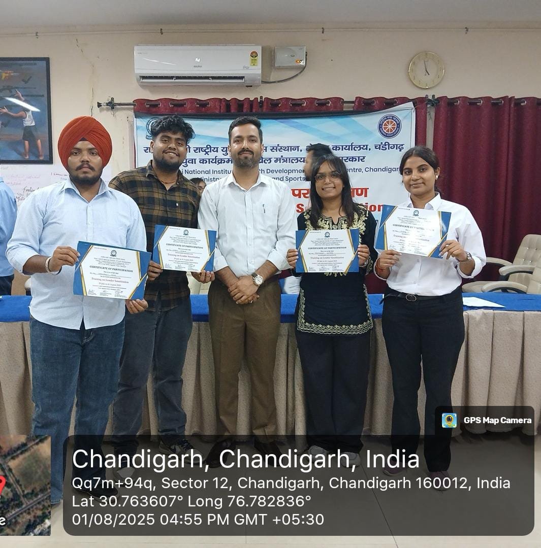 Four dedicated NSS volunteers from Lamrin Tech Skills University are participating in a Gender Sensitization Training Programme organized by the Rajiv Gandhi National Institute of Youth Development at Sector 12, Chandigarh.