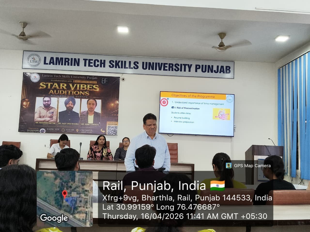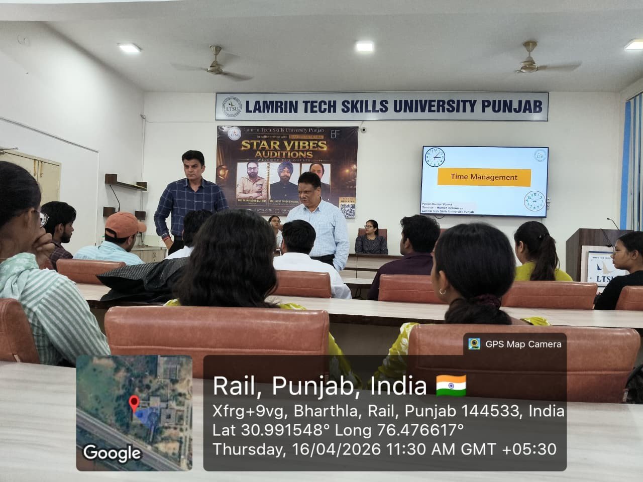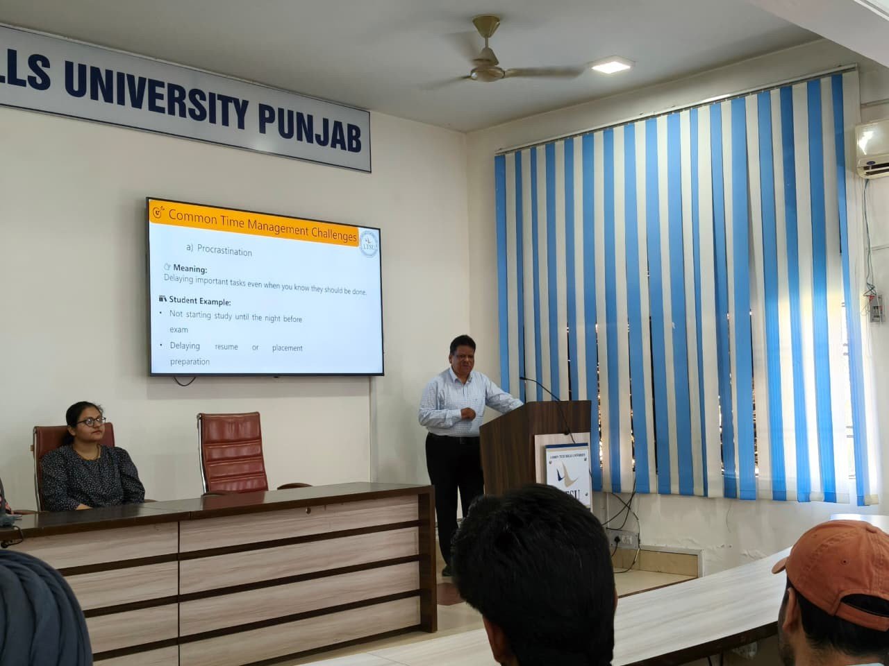 The lecture was delivered by Mr. P. K. Verma, Director HR at Lamrin Tech Skills University, who shared valuable insights on Time Management and preparing students for the Real Corporate World.