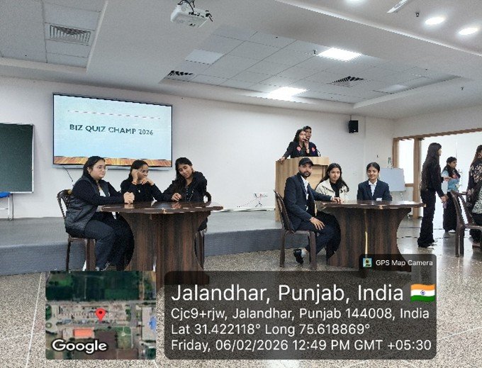The University School of Commerce & Management of Lamrin Tech Skills University actively participated in the Inter-University Biz Quiz Competition held at DAV University, Jalandhar during 5th–6th February 2026 with the objective of promoting competitive learning, analytical thinking, and academic excellence among students.