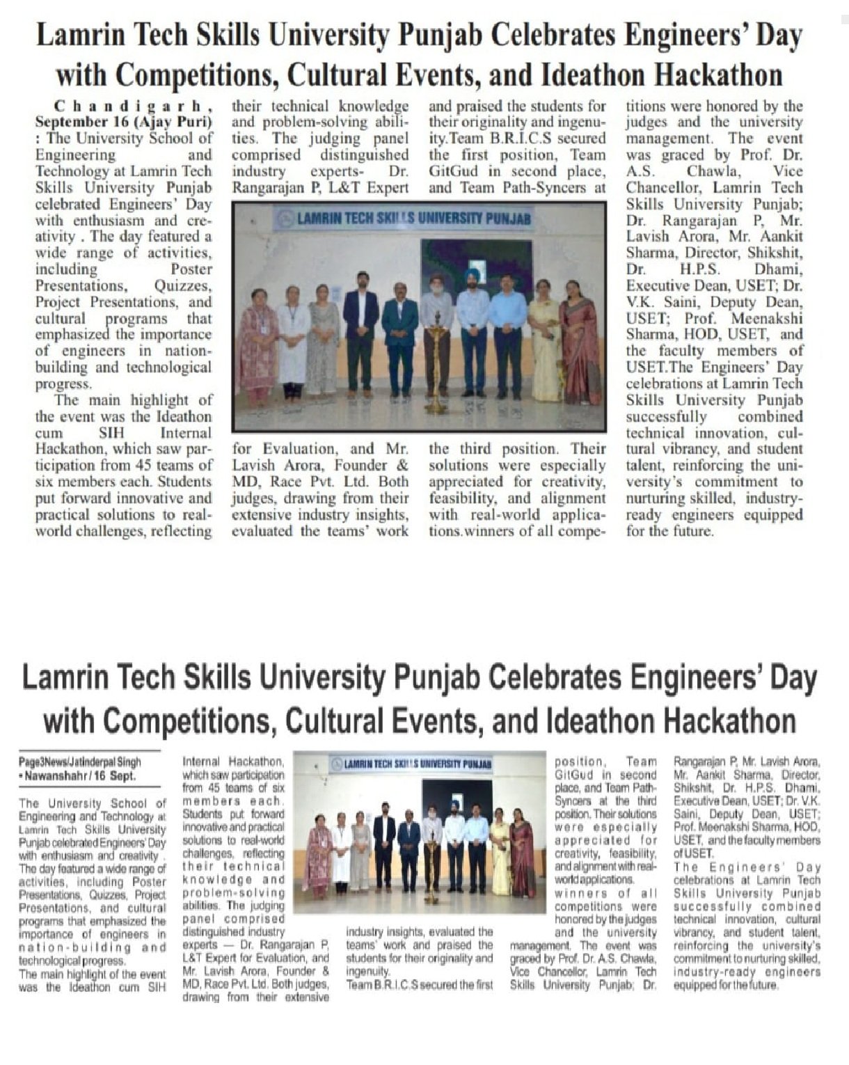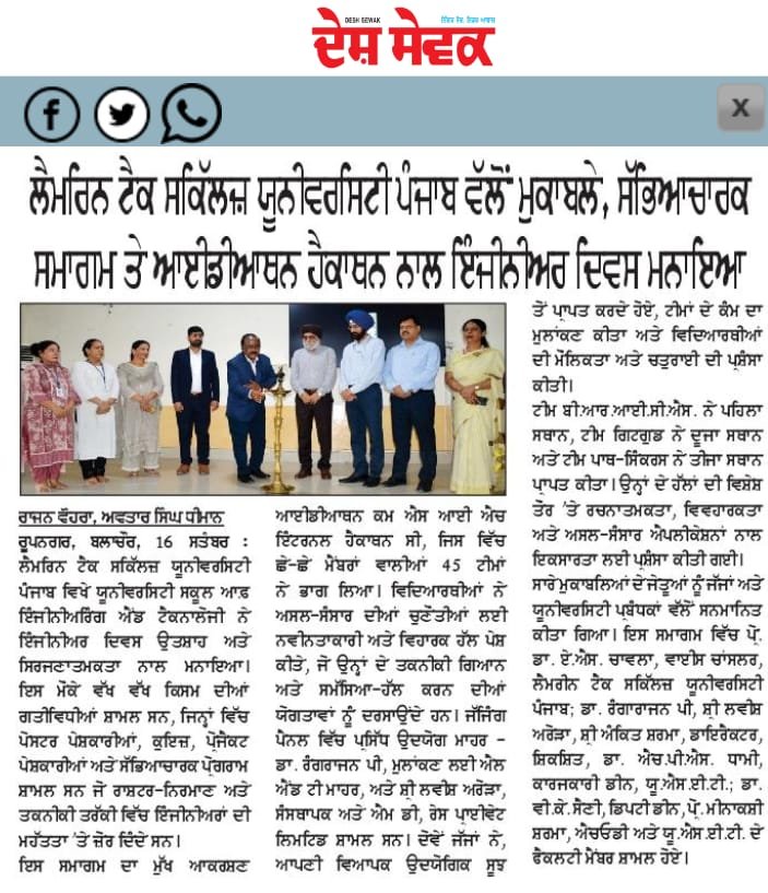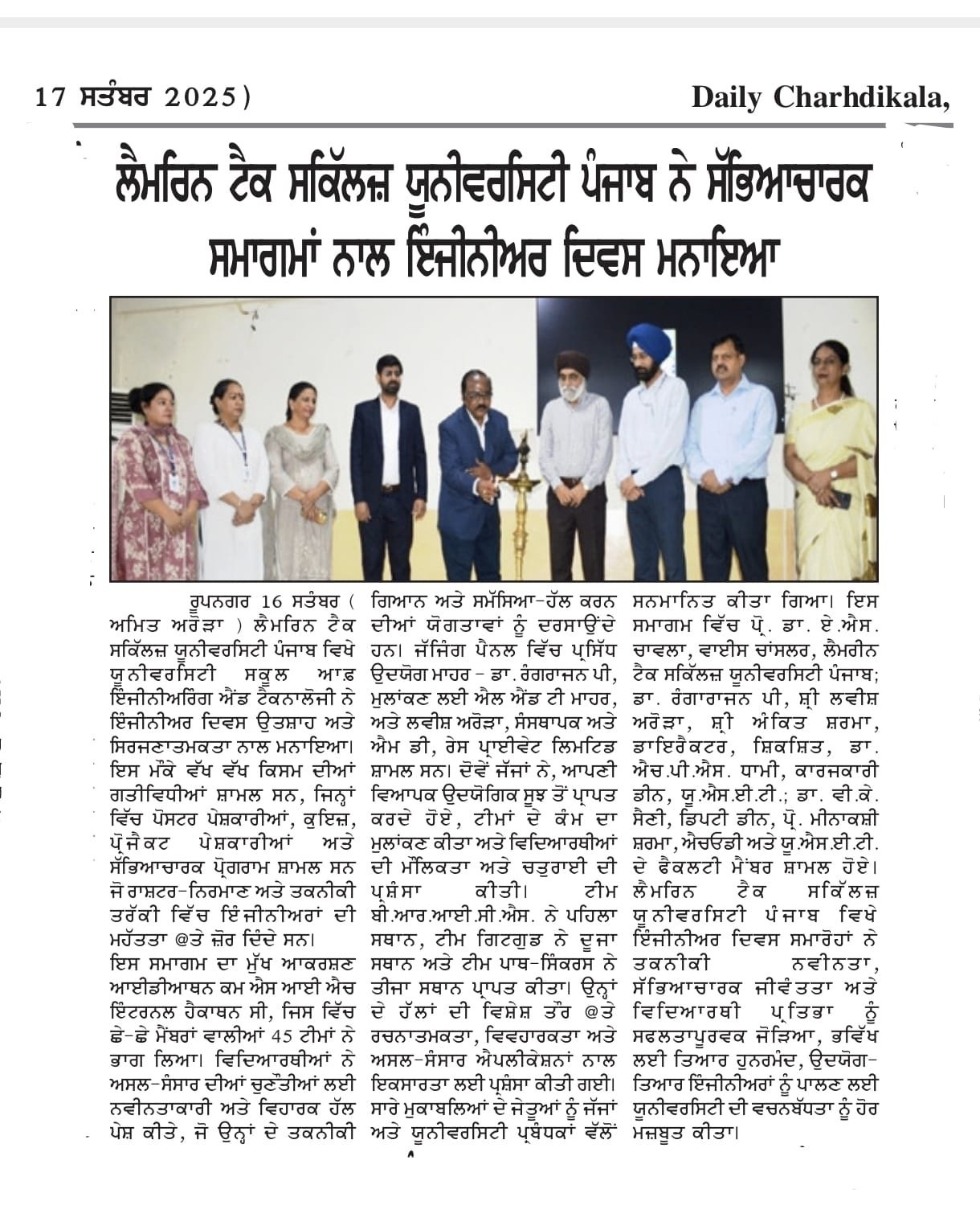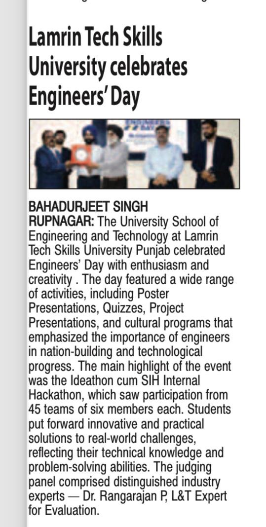 The event was graced by Sh Nirmal Singh Rayat Chancellor Lamrin Tech Skills University Punjab as a chief guest. He appreciated the performances of the students.