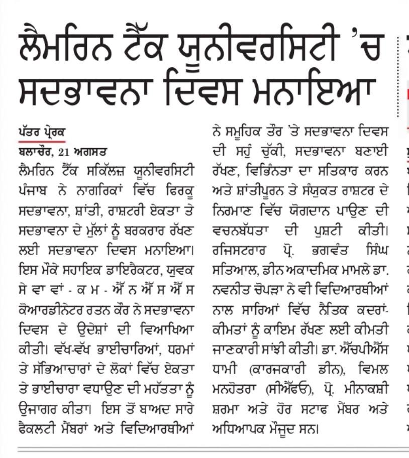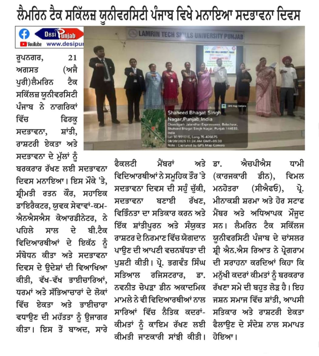 Lamrin Tech Skills University Punjab celebrated Environment Day to make the public aware of environmental conservation, cleanliness, tree planting, and saving natural resources.