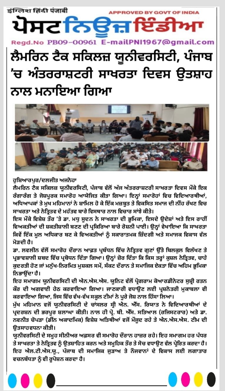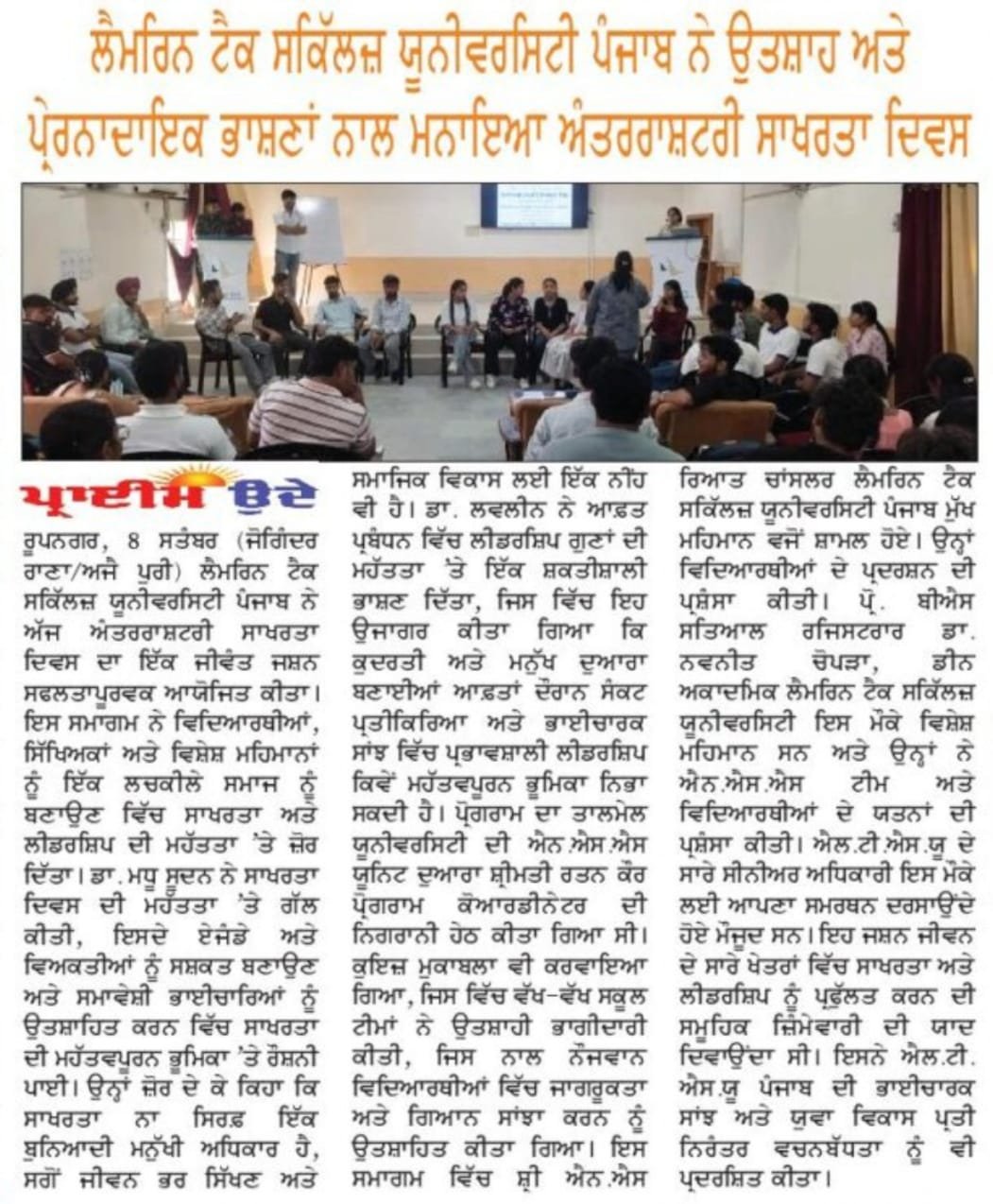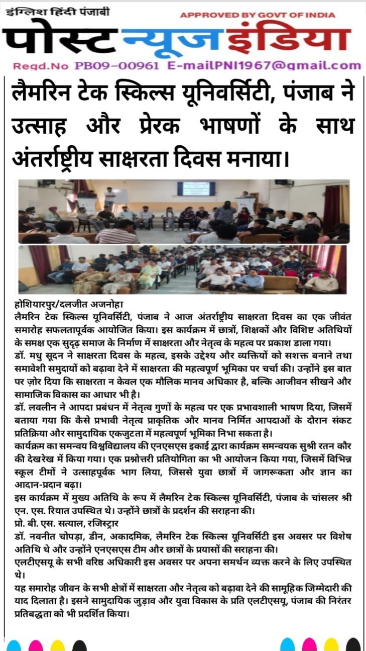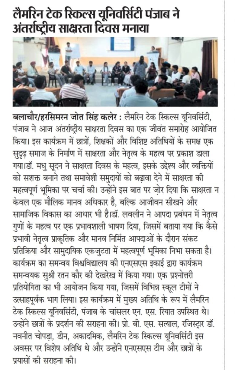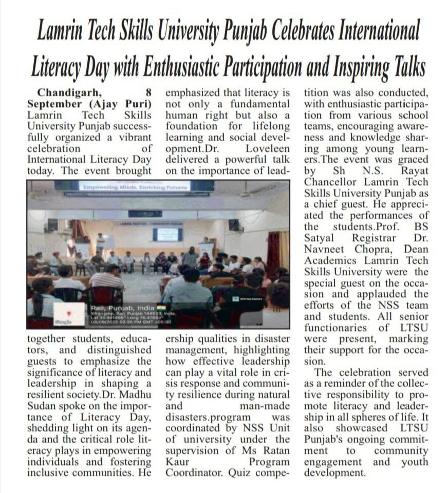 Press Coverage | Engineers’ Day Celebration at Lamrin Tech Skills University, Punjab