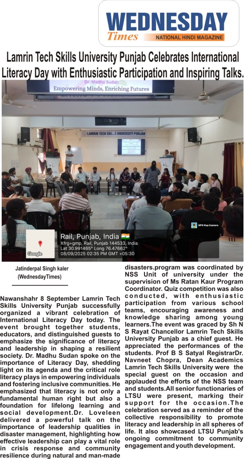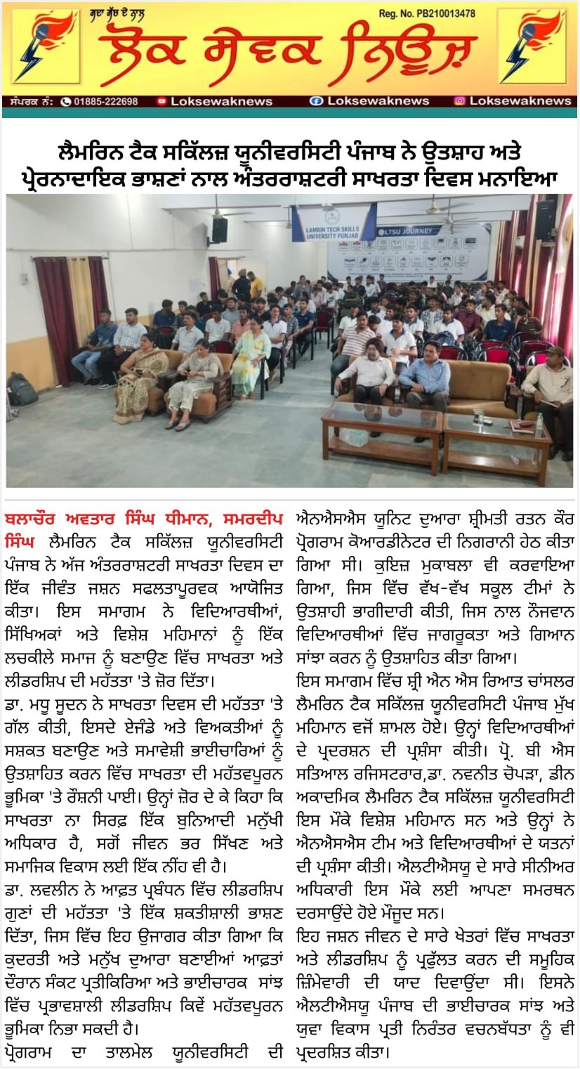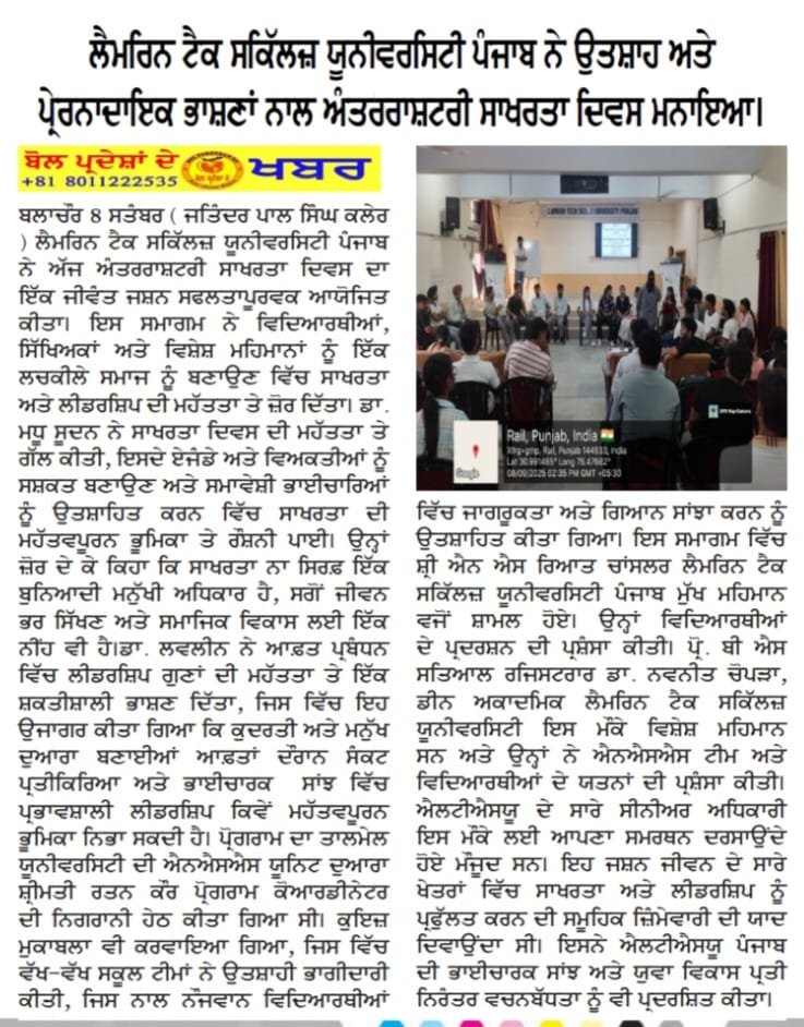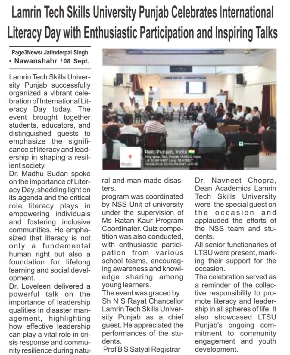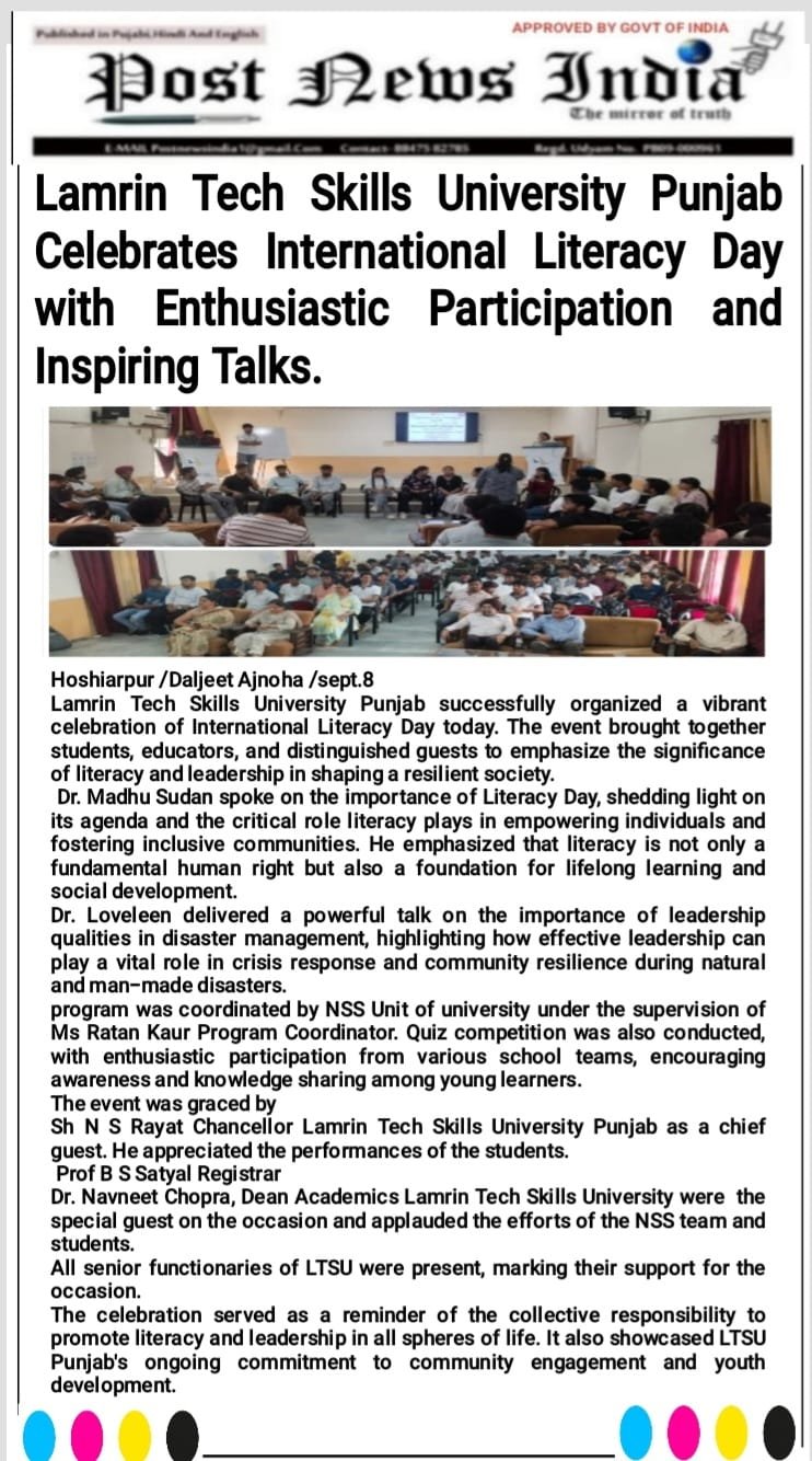 Press Coverage | Engineers’ Day Celebration at Lamrin Tech Skills University, Punjab